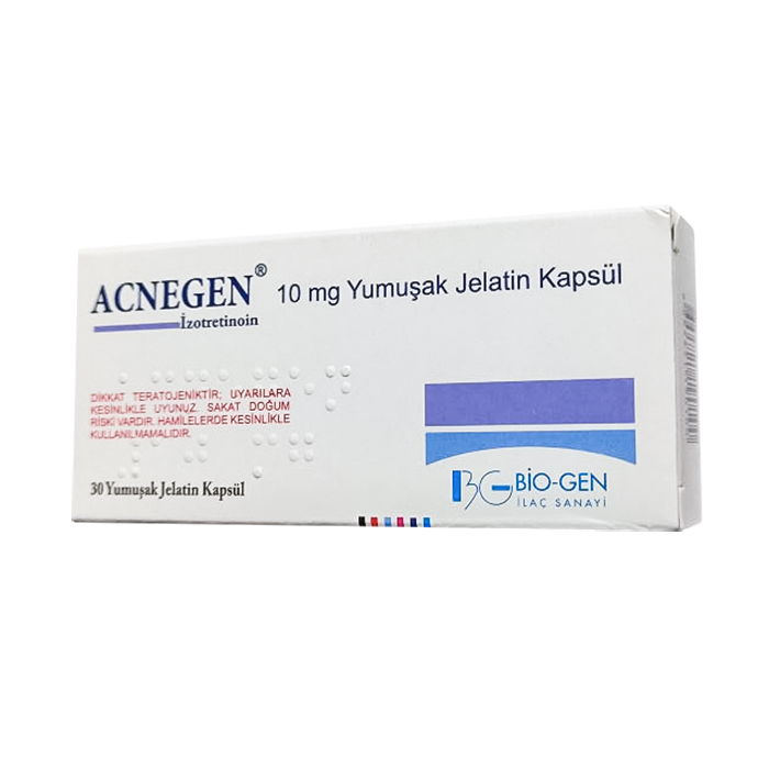 Изотретиноин, активный ингредиент Acnegen, представляет собой стереоизомер ретиноевой кислоты (третиноин) в полностью транс-положении. Детали точного механизма действия Acnegen пока не известны, но улучшение клинической картины тяжелых форм акне связано с подавлением активности сальных желез и гистологическим уменьшением сальных желез. Кроме того, доказан кожный противовоспалительный эффект изотретиноина.
