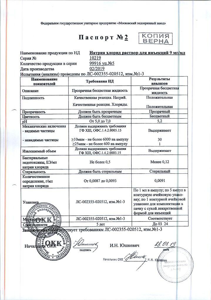 Растворитель: натрия хлорида р-р д/и 0.9% - 1 мл.