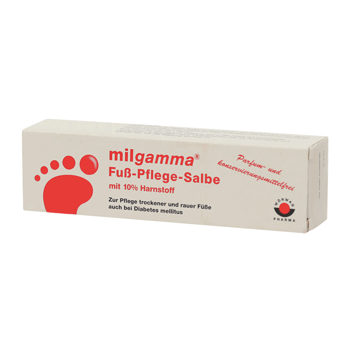 Крем для ухода за ногами Мильгамма® содержит влагоудерживающее средство мочевину в высокой концентрации. Мочевина является естественным влагоудерживающим компонентом кожи и содержится в здоровом роговом слое в объеме примерно 1%. Зачастую при сухой коже содержание мочевины в кожных покровах понижено. В дерматологии мочевина является испытанным, естественным влагоудерживающим фактором, который связывает влагу и тем самым повышает ее уровень в коже, ослабляет зуд и смягчает роговой слой. Таким образом, поддерживается способность кожи к приему и аккумулированию влаги. В целях снижения риска раздражения кожи и возникновения аллергии крем для ухода за ногами Мильгамма® содержит только мочевину и мазевую основу, благотворно воздействующую на кожу.