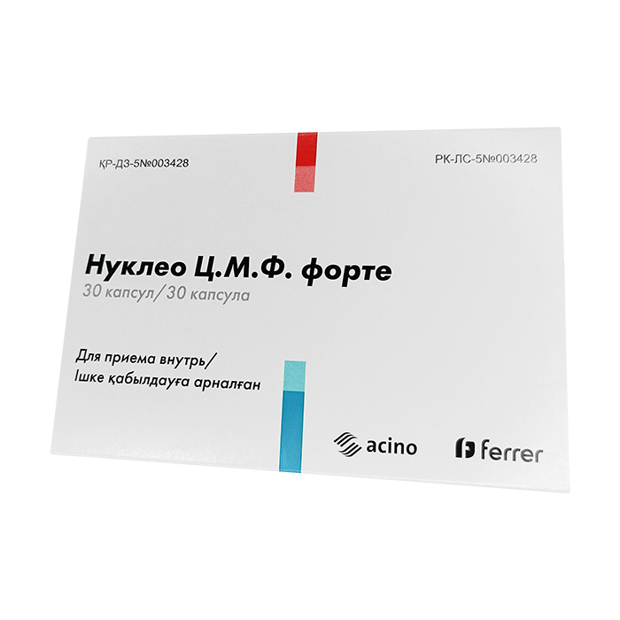 Нуклео ц.м.ф. форте в своем составе содержит пиримидиновые нуклеотиды - цитидин-5-монофосфат (ЦМФ) и уридин-5-трифосфат (УТФ), которые являются необходимыми компонентами при лечении заболеваний нервной системы.
