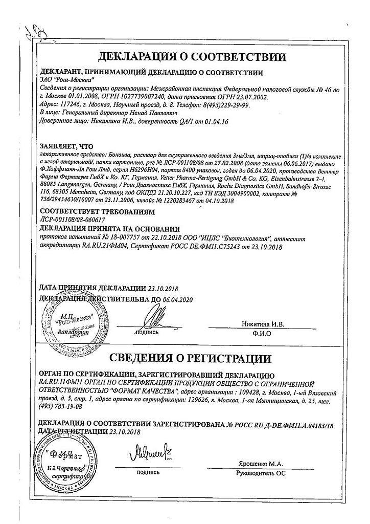 Особые указания. При лечении препаратом Бонвива пациенткам следует употреблять достаточное количество кальция и витамина D. До начала применения препарата Bonviva следует скорректировать гипокальциемию и другие нарушения метаболизма костной ткани, и электролитного баланса.