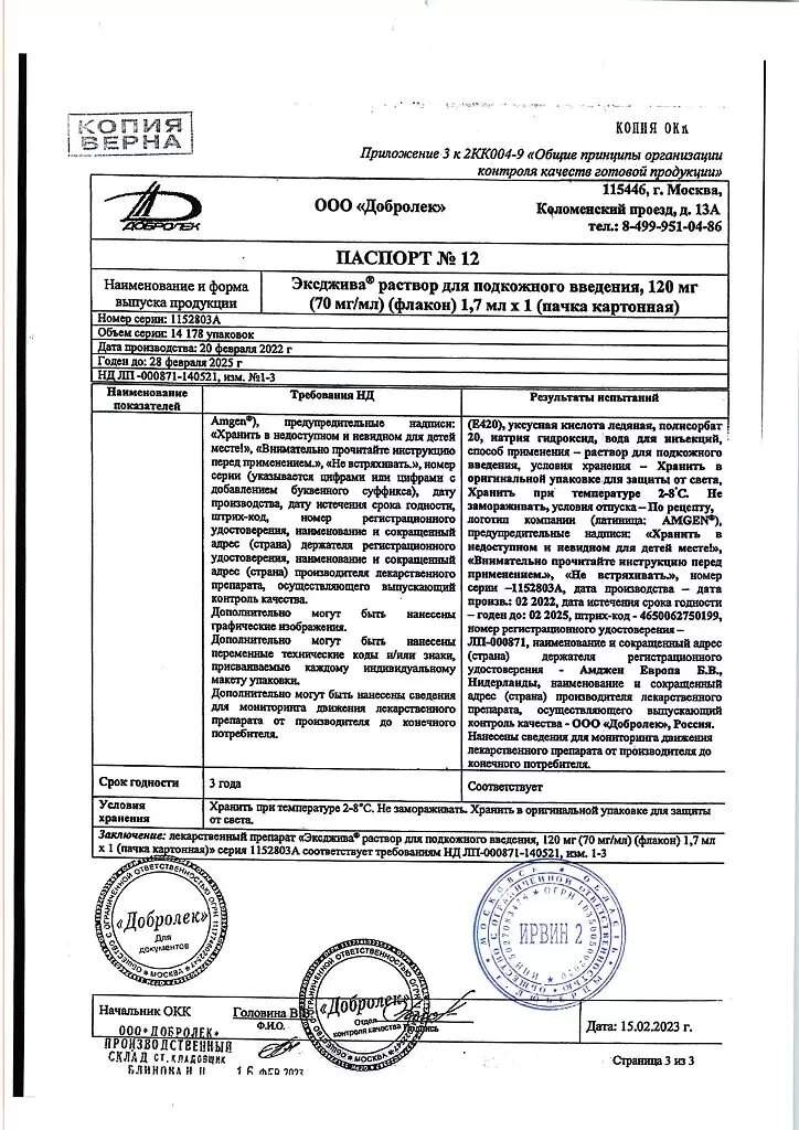 Особые указания. Препарат рекомендуется вводить иглой для однократного применения 27-калибра. Чтобы избежать дискомфорта в месте введения, следует согреть раствор Эксджива до комнатной температуры перед инъекцией.