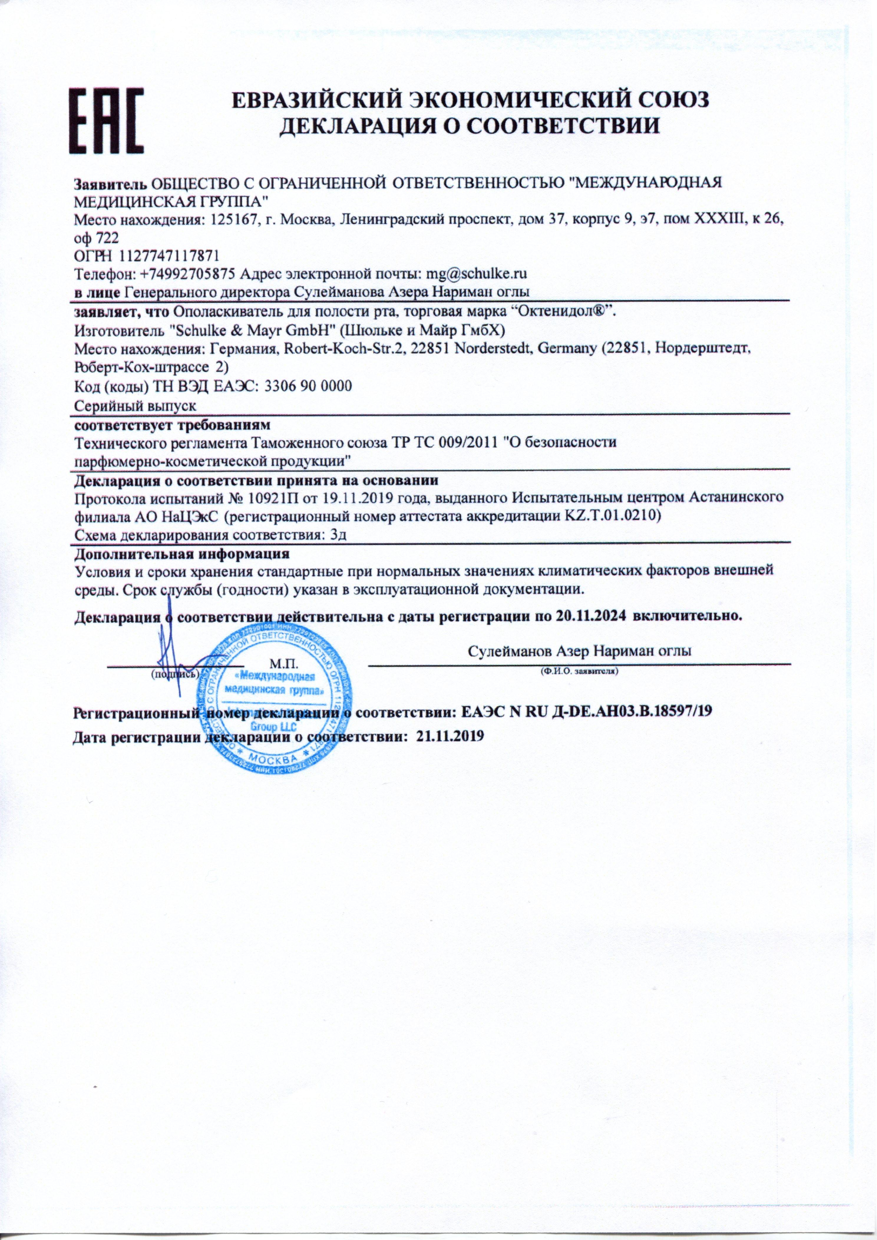 Показания. Ополаскиватель Октенидол особенно рекомендуется для регенерации слизистой оболочки при воспалении ротовой полости. Он также используется в ситуациях, когда возможности выполнения процедур гигиены полости рта ограничены, особенно когда невозможно чистить зубы.