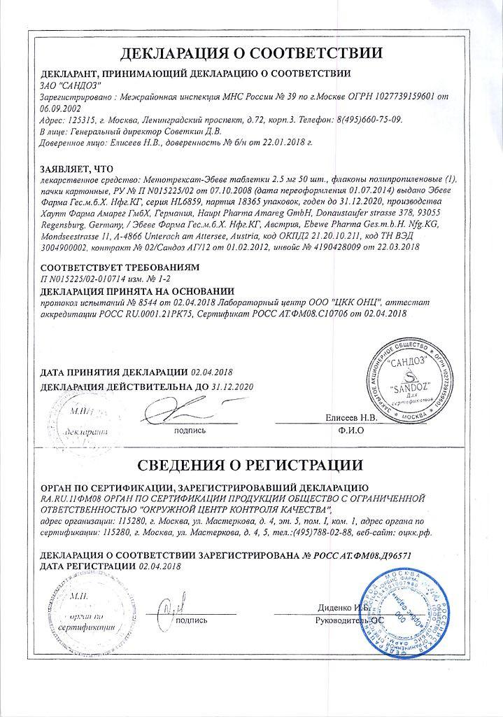 1 таблетка Метотрексат содержит: метотрексат 2,5 мг.