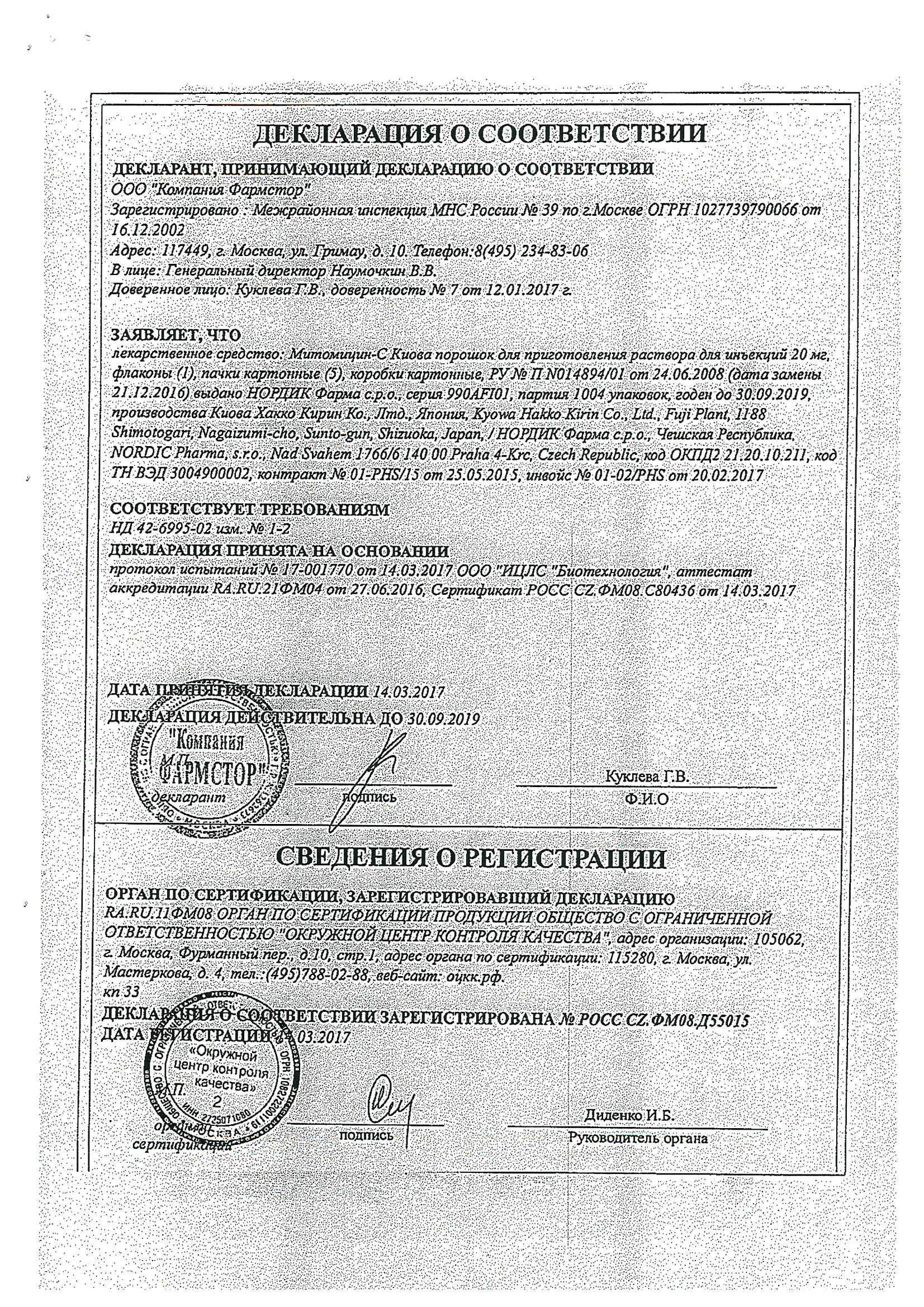 Во время курса лечения и на протяжении 8 недель после его окончания необходимо контролировать картину периферической крови. Снижение количества тромбоцитов менее 100 000/мкл, лейкоцитов менее 4000/мкл является основанием для отмены митомицина. Возобновление введения митомицина возможно только после восстановления гематологических показателей.