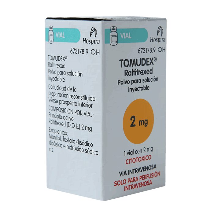 Применение. Приготовленный раствор Томудекса вводят внутривенно. Дозировка препарата Tomudex рассчитывается на основании площади поверхности тела. Рекомендуемая доза — 3 мг/м2, в виде одной короткой в/в инфузии в 50–250 мл 0,9% раствора натрия хлорида или 5% раствора декстрозы (глюкозы). Рекомендуется проводить инфузию в течение 15 мин.
