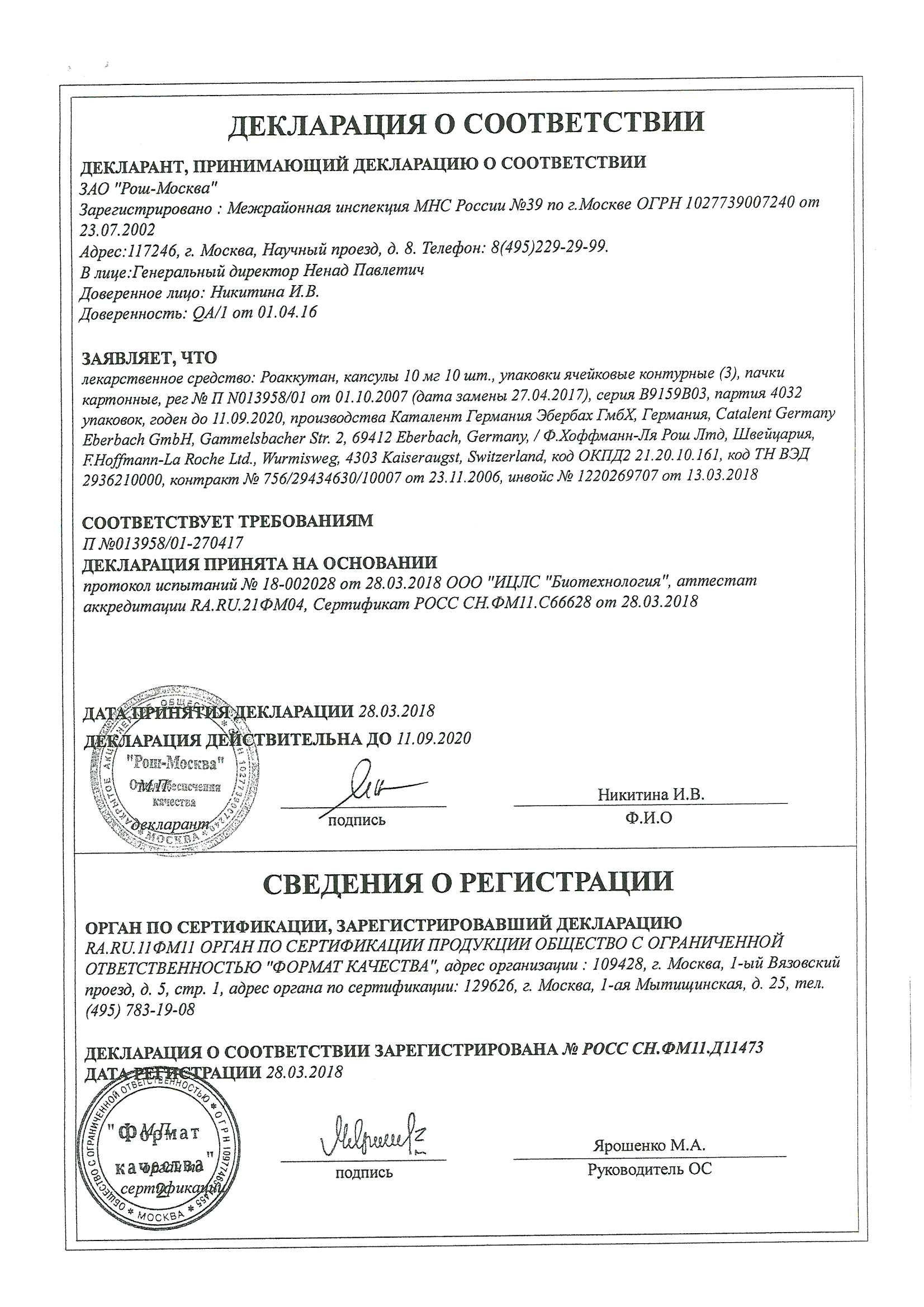 Роаккутан должны назначать только врачи, предпочтительно дерматологи, имеющие опыт применения системных ретиноидов и знающие о риске тератогенности препарата. Пациентам как женского, так и мужского пола необходимо выдавать копию брошюры с информацией для пациента.