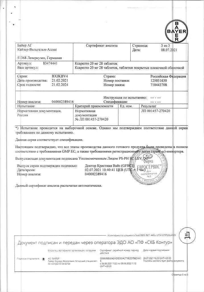 Сертификаты Ксарелто