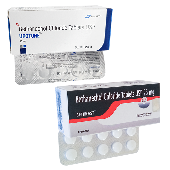 1 таблетка содержит 25 мг активного вещества Бетанехол хлорид.